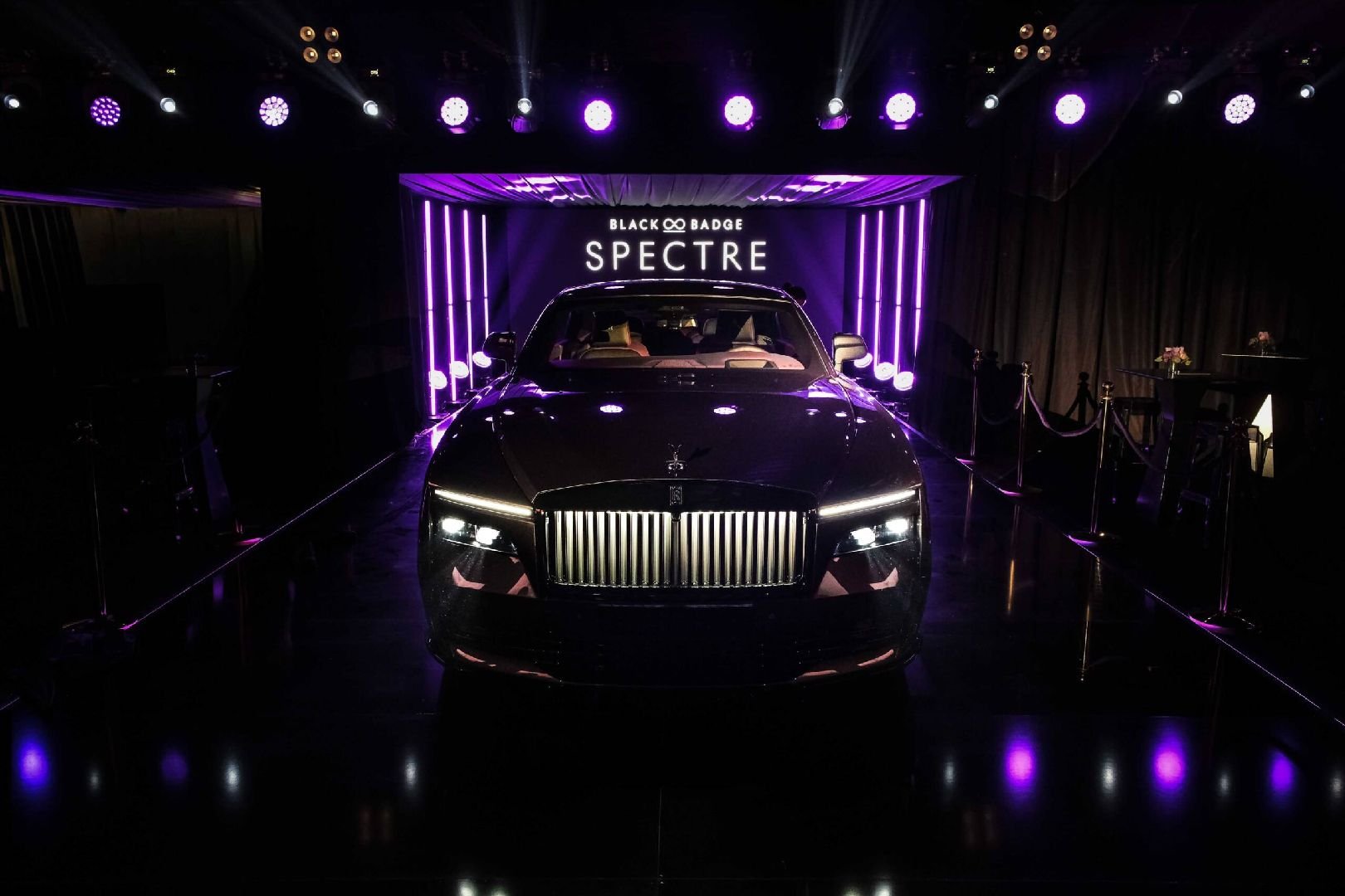 Tüm Black Badge modellerinde olduğu gibi, Black Badge Spectre’in ayna cilalı parlak detayları, aracın koyu karakterini vurgulayan imza koyu kaplamayla sunuluyor. Bu detay, markanın ikonik Pantheon Izgarası çevresi, Spirit of Ecstasy figürü ve çift “R” Onur Rozeti gibi detayları da kapsıyor.