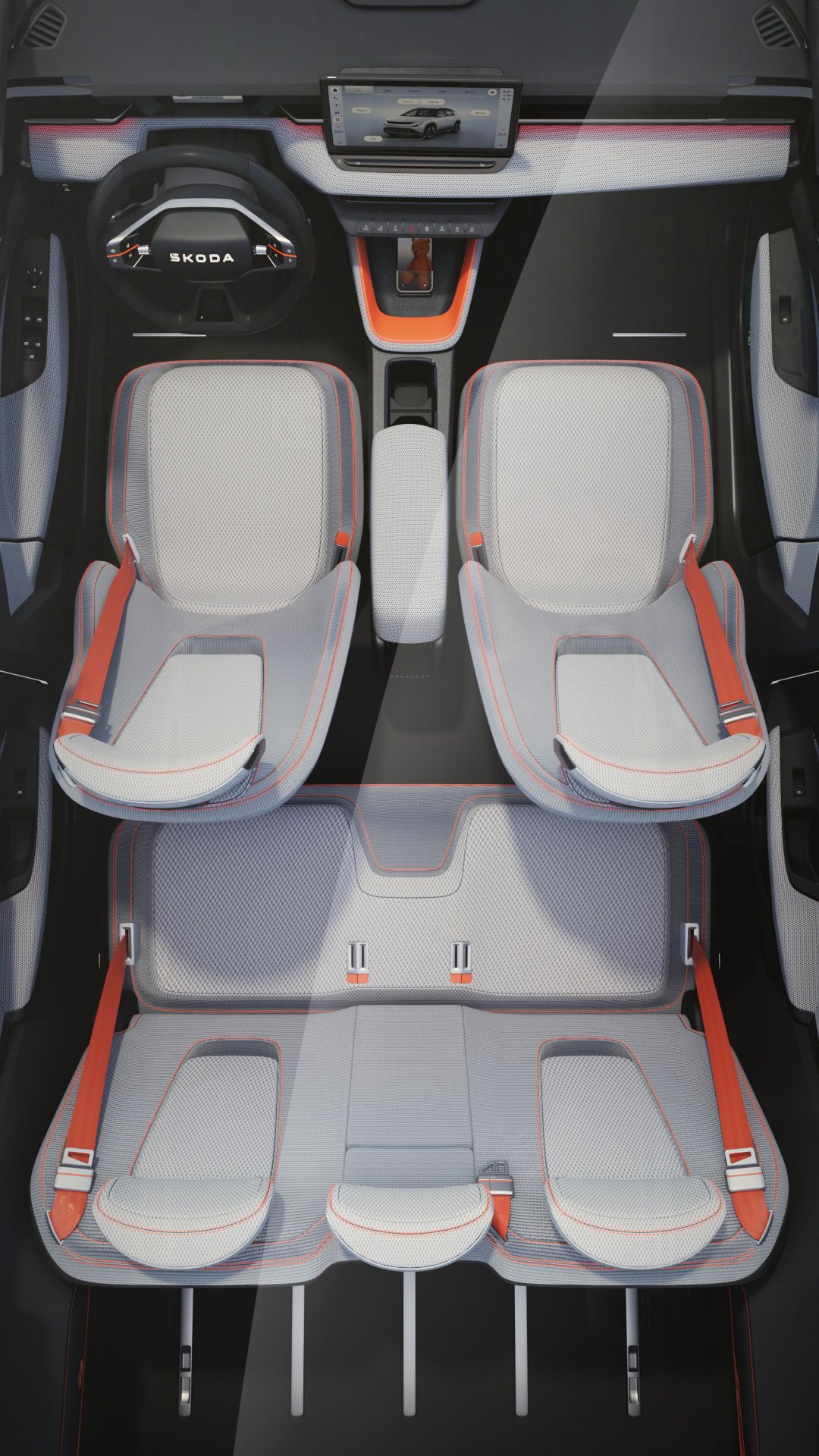 Škoda Epiq, dayanıklı ve sürdürülebilir malzemelere odaklanan minimalist Modern Solid kabine sahip ilk üretim aracı olacak. Birçok farklı saklama alanı, bagajda çanta kancası ve gizli zemin altı bölmesi gibi markaya özgü Simply Clever özellikleri sunacak Epiq, kabinindeki pratik unsurlarla dikkat çekiyor.