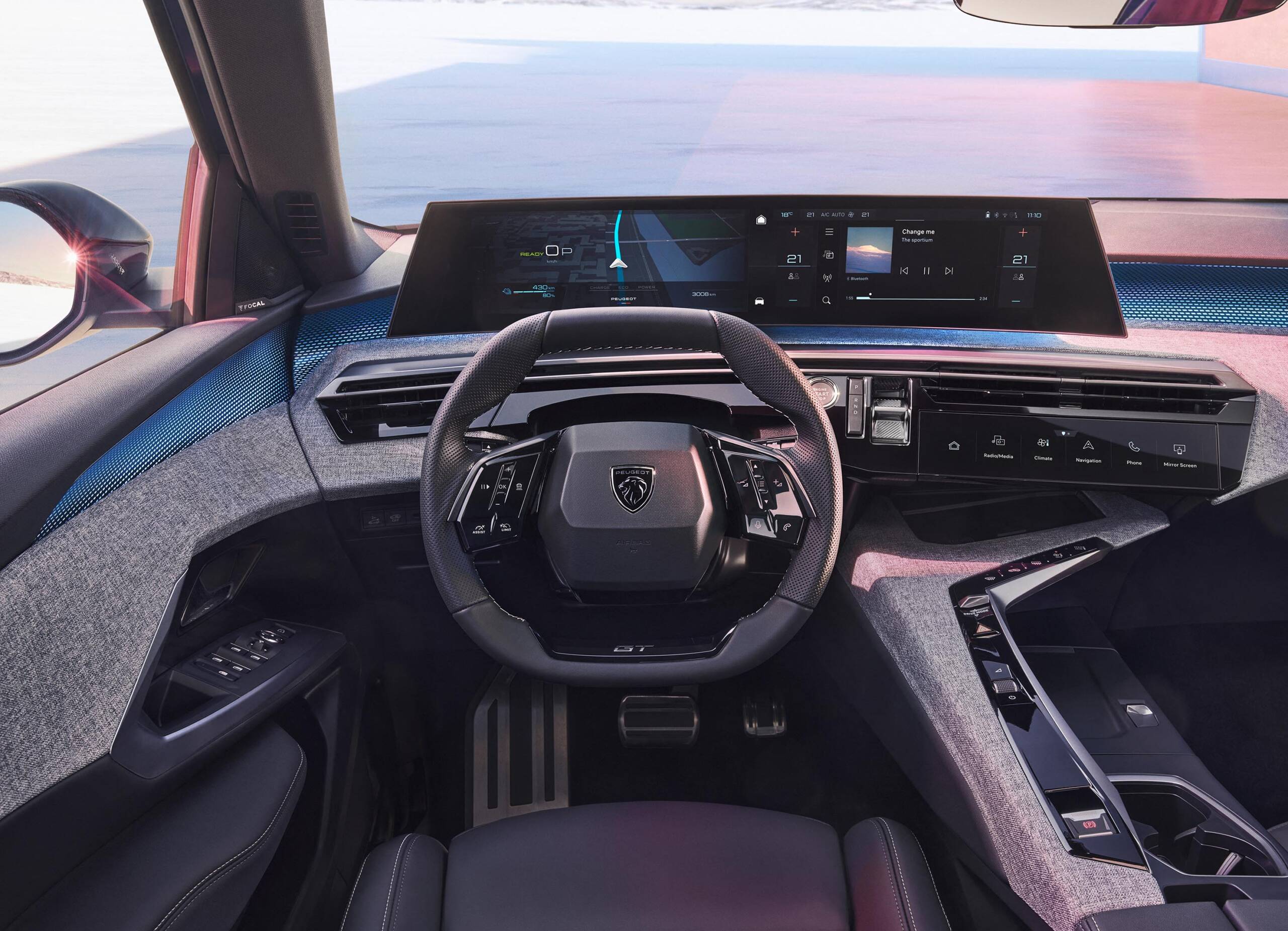 E-3008’in dışındaki yenilik ve şıklık, içeride de devam ediyor. Yeni PEUGEOT Panoramic i-Cockpit®, sürüş keyfini bir üst seviyeye taşıyor. Kavisli 21 inçlik HD panoramik ekran, yükseltilmiş gösterge paneli ile dokunmatik multimedya ekranını birleştiriyor. Panoramik ekranın sol tarafında gösterge paneli, sürüşle ilgili hız, güç, sürüş yardımcıları ve enerji akışı gibi tüm bilgileri kompakt direksiyon simidinin üzerinde birleştiriyor. Panoramik ekranın sağ tarafında yer alan ve ön konsolun ortasındaki dokunmatik ekrana hem sürücü hem de yolcu rahatlıkla erişebiliyor. Bu ekran klima ayarı, navigasyon ve medya/bağlantı gibi işlevleri yönetmek için kullanılabiliyor. 3008’in Allure versiyonunda, yeni PEUGEOT Panaromic i-Cockpit®, tek bir panele entegre edilen iki adet 10 inçlik dijital ekrandan oluşuyor ve 21 inçlik panelle aynı etkiyi veriyor. GT, standart olarak 21 inçlik tek bir ekranla donatılıyor. Ön konsolun ortasında, tamamen kişiselleştirilebilir dokunmatik i-Toggles’a da yer veriliyor. Kullanıcı bu panelde; bir kişiyi aramak, sık kullanılan bir varış noktası için navigasyonu başlatmak, kaydedilen radyo istasyonlarından birini ayarlamak, ideal klima sıcaklığını ayarlamak gibi, en sık kullandığı 10 işlevi, hızlı erişim için programlayabiliyor.