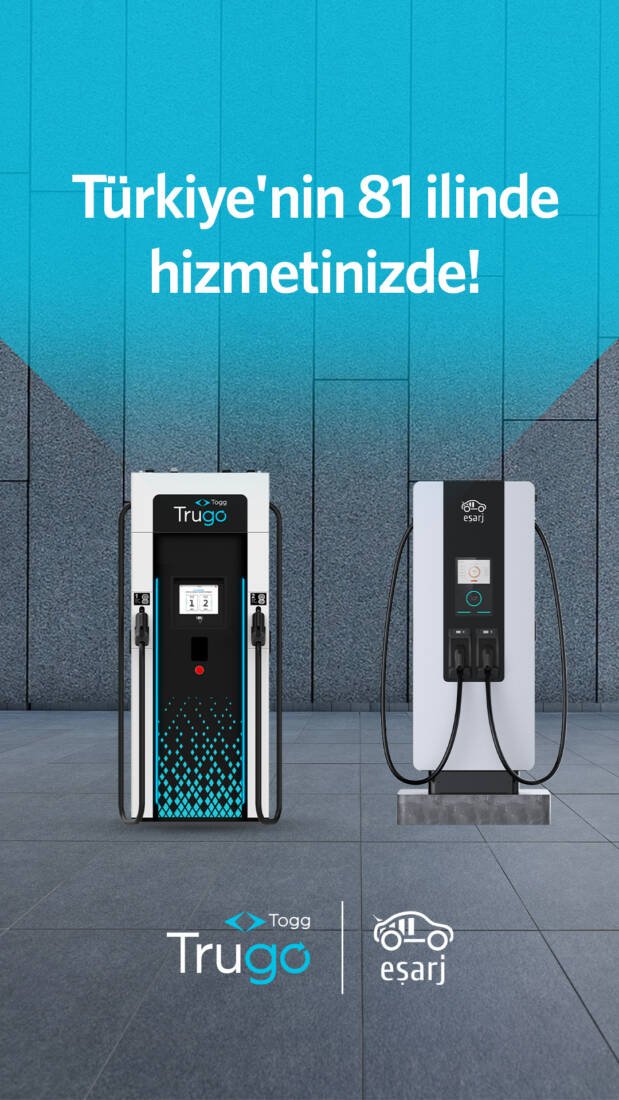 Eşarj ve Trugo, elektrikli araç kullanıcılarına marka bağımsız bir deneyim sunan roaming iş birliğini 81 ilde kullanıcılarla buluşturdu. İlk olarak Bursa’da başlayan, ardından Ankara ile yaygınlaşan uygulama, Türkiye’nin 81 ilindeki kullanıcıların hizmetine sunuldu. İş birliğinin ülke genelinde yaygınlaşmasıyla birlikte kullanıcılar, tek bir üyelik ile diledikleri mobil uygulama üzerinden ödeme yaparak, her iki markanın seçili istasyonlarında toplamda 4000’e yakın yüksek hızlı DC sokette konforlu bir şarj deneyimi yaşamaya başladı. Kullanıcılar roaming uygulaması sayesinde iki markadan herhangi birinin uygulamasında ortak kullanım istasyonlarını rahatlıkla görüntüleyebiliyor, komisyon ödemiyor ve kesintisiz bir şekilde araçlarını şarj edebiliyor. Bu sayede her iki markanın da kullanıcıları, iş birliğiyle iki katı DC hızlı şarj istasyonuna ulaşabiliyor.