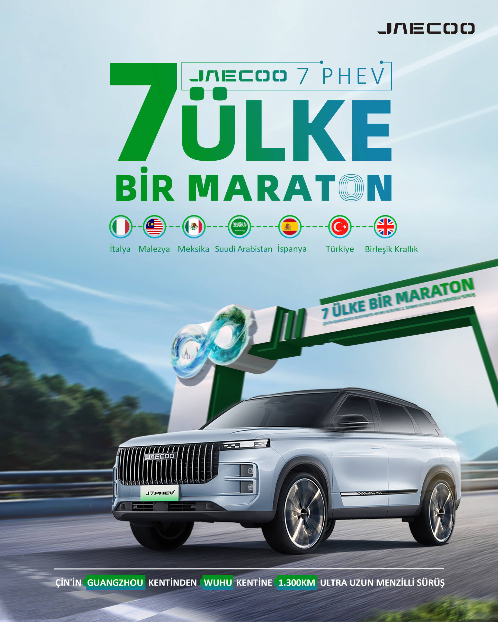 Yedi ülkeyi kapsayan maraton tarzındaki ultra menzilli test yolculuğu, İtalya, Malezya, Meksika, Suudi Arabistan, İspanya, Türkiye ve İngiltere dahil olmak üzere yine yedi ülkeden basın ve fikir önderlerini bir araya getiriyor. Bununla birlikte dünyanın dört bir yanındaki kullanıcılar da canlı yayın üzerinden JAECOO 7 PHEV’in rotasını takip edebilecek ve farklı ortamlardaki üstün performansına tanık olabilecekler.