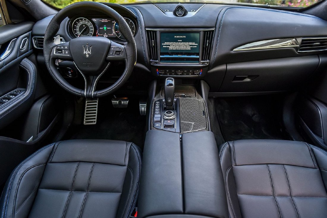 “Azzurro Astro” adı verilen yeni metalik üç katmanlı mavi renk ile tanıtılan Levante Hibrit’te, tıpkı Ghibli’de olduğu gibi bazı ayrıntılar kobalt mavisi ile vurgulanıyor. Maserati bu renk ile hibrit versiyonları diğer modellerden ayrıştırıyor. Kabin içinde yüksek çözünürlüklü ve gelişmiş grafiklere sahip 8,4 inçlik ekran, uygulanan tasarım sayesinde havalandırma ızgaralarıyla birlikte bütünleşerek kavisli tek bir ekran gibi görünüyor. Ekranın hemen altında ise zarif tasarımıyla iklimlendirmeye ait kumanda paneli bulunuyor. Gösterge panelinin ortasında 7 inç büyüklüğünde bir TFT bilgi ekranı bulunuyor. Bunun her iki yanında analog, ancak modern ve güncel grafiklerle büyük boy hız ve devir göstergesi yer alıyor. Parlak ve mat siyah renklerin dönüşümlü olarak uygulanmasıyla elde edilen efektler modern görünümü destekliyor.