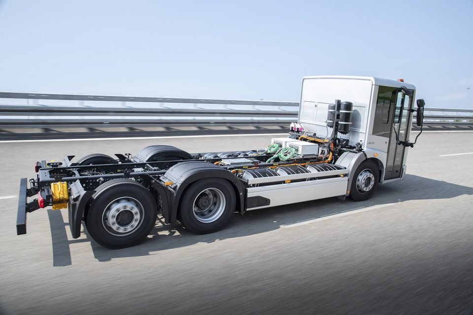 Let’s make a step back and talk about electric trucks. The eActros distribution truck will be produced since the beginning of October in Wörth, while the long-haul version, with 500 km autonomy will be ready in 2024. At the technological heart of the eActros is the drive unit with two integrated electric motors along with a two-speed transmission. Both motors provide for impressive ride comfort and great vehicle dynamics, while the quiet and emission-free electric drive means the truck can also be used for night deliveries and entry into inner cities with driving bans for diesel vehicles. Depending on the version, the eActros draws its power from three or four battery packs – each with a capacity of around 105 kWh. The maximum capacity of 420 kWh enables ranges of up to 400 kilometres to be achieved. The eActros can be charged with up to 160 kW: the three battery packs need a little over an hour to charge from 20 to 80 per cent at a normal DC rapid charging point with a charging current of 400 A.