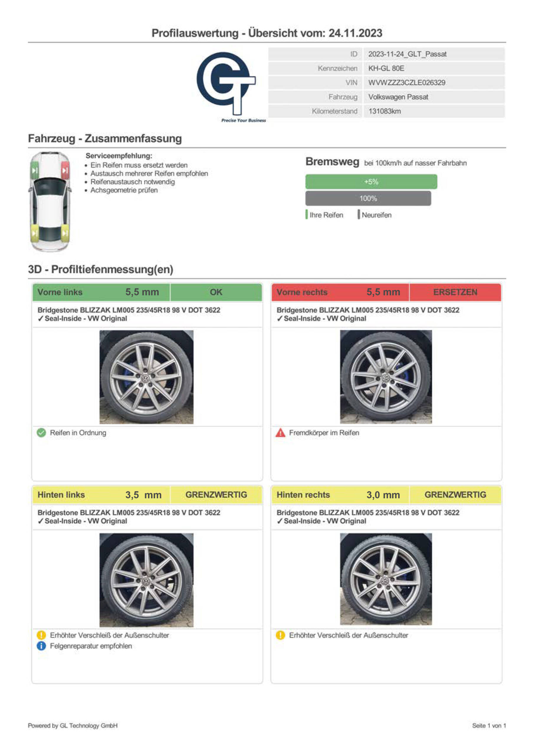 The app is also customisable in terms of its compatibility with other GL Technology GmbH products. “In our work, we also use, for example, the StackedTireProfiler tyre tread measurement tool from GL Technology along with the mobile TireScanMobile app,” says Kleinfeller. This measurement system is designed for the precise tread measurement of an entire stack of tyres – in just a few seconds. The car owner can thus be informed immediately on site about the condition of the entire set of tyres and advised of any need for new tyres. “With our specially developed measurement solutions for complete wheels and tyres, we want to make day-to-day work easier for companies in the automotive aftermarket,” Klein says in summary. “With the TireScanMobile app as an independent app or expansion to existing systems, we are finally bringing tyre documentation into the digital age.”