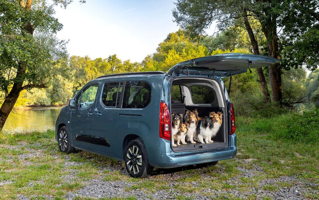 On the way back home in the evening, both animal and human passengers can even enjoy the view of the starry sky – made possible by the optional panoramic roof, which protects against glare during the day thanks to an electrically activated sunshade. As is typical for Combo, the panoramic roof has other advantages in store: It has a central roof gallery that can be used in a variety of ways. When the family goes on a trip in the Combo Electric, the electric car offers up to 186 litres of additional space thanks to 27 storage options in the passenger compartment and the roof gallery – providing convenient storage for dog treats or toys, for example.
