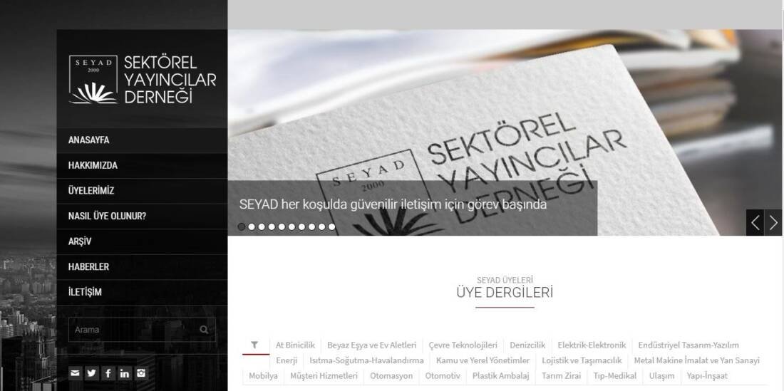 SEYAD, COVID-19 sürecinde çeşitli zorluklarla karşılaşan sektörlere iletişim desteği sunma faaliyetlerini sürdürüyor. Dernek, web sitesini daha yalın ve kullanıcı dostu bir formata sokmak üzere başlattığı çalışmaları tamamladı. Yenilenen yüzüyle erişime açılan seyad.org web sitesinde kullanıcıları ilk olarak dernek üyesi sektörel yayıncılar tarafından sektör profesyonelleriyle buluşturulan yayınların kapak fotoğraflı bir listesi karşılıyor. 60’tan fazla basılı yayının yanı sıra pek çok dijital mecrayı da temsil eden SEYAD, bu alanda Türkiye’nin ilk ve tek çatı örgütü durumundadır. Yenilenen web sitesinde yer alan Hakkımızda sekmesinden yönetim kurulu, tüzük, yönetmelikler ve faaliyet raporlarına erişim imkânı sunan SEYAD, şeffaf yönetim ve hesap verebilirlik ilkelerine uygun bir kullanıma zemin hazırlıyor. Derneğin kuruluşundan bu yana tüm faaliyet raporlarının incelenebildiği bu kısımda, yayıncılık dünyasıyla ilgili kuruluşların web sitelerinin linklerine erişmek de mümkün. Derneğe üye olan firmalar, dergiler ve dijital yayınların sürekli güncellenen bir listesinin de yer aldığı web sitesinde “Nasıl üye olunur?” sekmesi üzerinden üyelik şartlarının yanı sıra meslek ilkeleri ve etiğine ilişkin kurallar da kullanıcılara sunuluyor. SEYAD’ın bugüne kadar yayımladığı raporların yanı sıra eğitimler ve bildiriler gibi pek çok farklı materyali içeren Arşiv bölümü, Türkiye’de sektörel yayıncılığın belleği hüviyetinde. SEYAD’dan, üye yayınlardan ve basın dünyasından güncel haberlerin de yer aldığı web sitesi yalınlaştırılmış tasarımıyla kullanıcıların rahat ve keyifli bir deneyim yaşamasını mümkün kılıyor. Derneğin sosyal medya hesaplarının yanı sıra adres, telefon ve e-posta adresi gibi iletişim bilgileri de web sitesinde kullanıcılara ve sektör profesyonellerine sunuluyor.