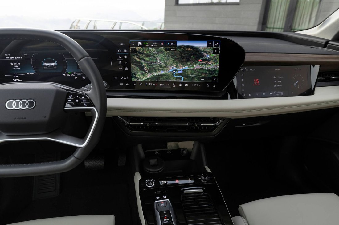 Yeni elektronik mimari ile kullanıcılar araçta dijitalleşmeyi her zamankinden daha fazla deneyimliyor. Audi MMI panoramik ekran ve MMI ön yolcu ekranı ile bir Dijital Sahne iç mekanı süslüyor. Açıkça gruplanan ekranlar tasarım konseptine tam olarak entegre edilmiş durumda ve iç mekâna ferah ve havadar bir his katıyor. 11,9 inç Audi sanal kokpit ve 14,5 inç MMI dokunmatik ekrandan oluşan zarif ve açıkta duran Audi MMI panoramik ekran kavisli bir tasarıma ve OLED teknolojisine sahip. Sürücünün kontrol alanı eğimli bir tasarıma sahip ve ekranın kavisli şekli sürücüyü sarıyor. Ayrıca Kavisli Ekranın şekli Audi’nin tipik Singleframe tasarımını andırıyor. Ambiyans aydınlatma kavisli ekranın karanlıkta havada süzülüyor gibi görünmesini sağlıyor. Ön konsol tasarımına mükemmel bir şekilde entegre edilen ve Audi’de ve premium orta sınıfta ilk kez kullanılan 10,9 inç MMI ön yolcu ekranı ön yolcuların dijital sahnesini tamamlıyor.